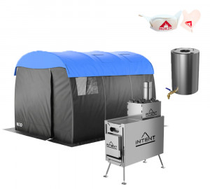 Баня палатка Морж LUX NEO, печь Intent 2.0 mini, каменка для печи, бак для воды 10 литров, тент...