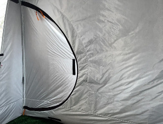 Все бани палатки модели LUX оснащены удобной распашной дверью на каркасе. Благодаря наклонной конструкции, дверь закрывается самостоятельно под собственным весом, а открывается легко - достаточно лишь немного потянуть ее на себя. Если дверь необходимо закрыть герметично, то воспользуйтесь молнией по контуру дверного проема.