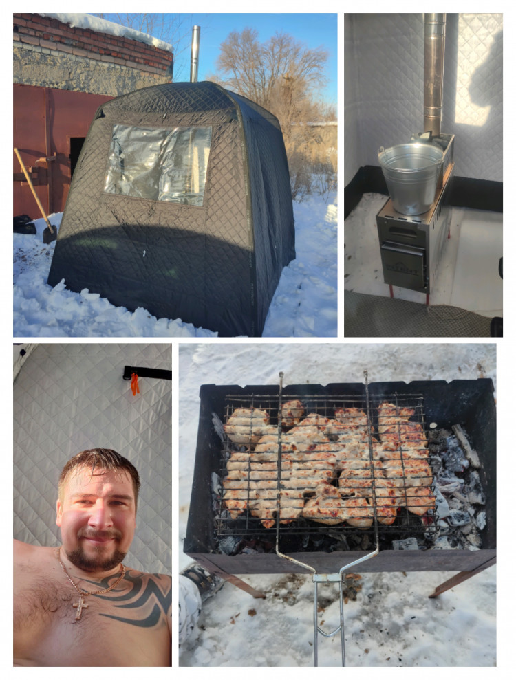 Отличная баня,никакая мобиба не сравнится,ориентированы на качество,даже сумка из материала бани,все в чехлах плотных,дуги,каменка,винты,4 брикета топливных 25мин и там 100’С зайти не возможно?не оставляйте стулья для сидения,с собой выносите,минус только что лопнули крючки пластиковые,сверху в углах которые сетку тянут,предназначены для сушения(трусы,полотенца)